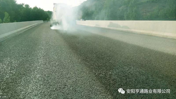 我公司長(zhǎng)臨項(xiàng)目橡膠改性瀝青同步碎石橋面防水試驗(yàn)段成功